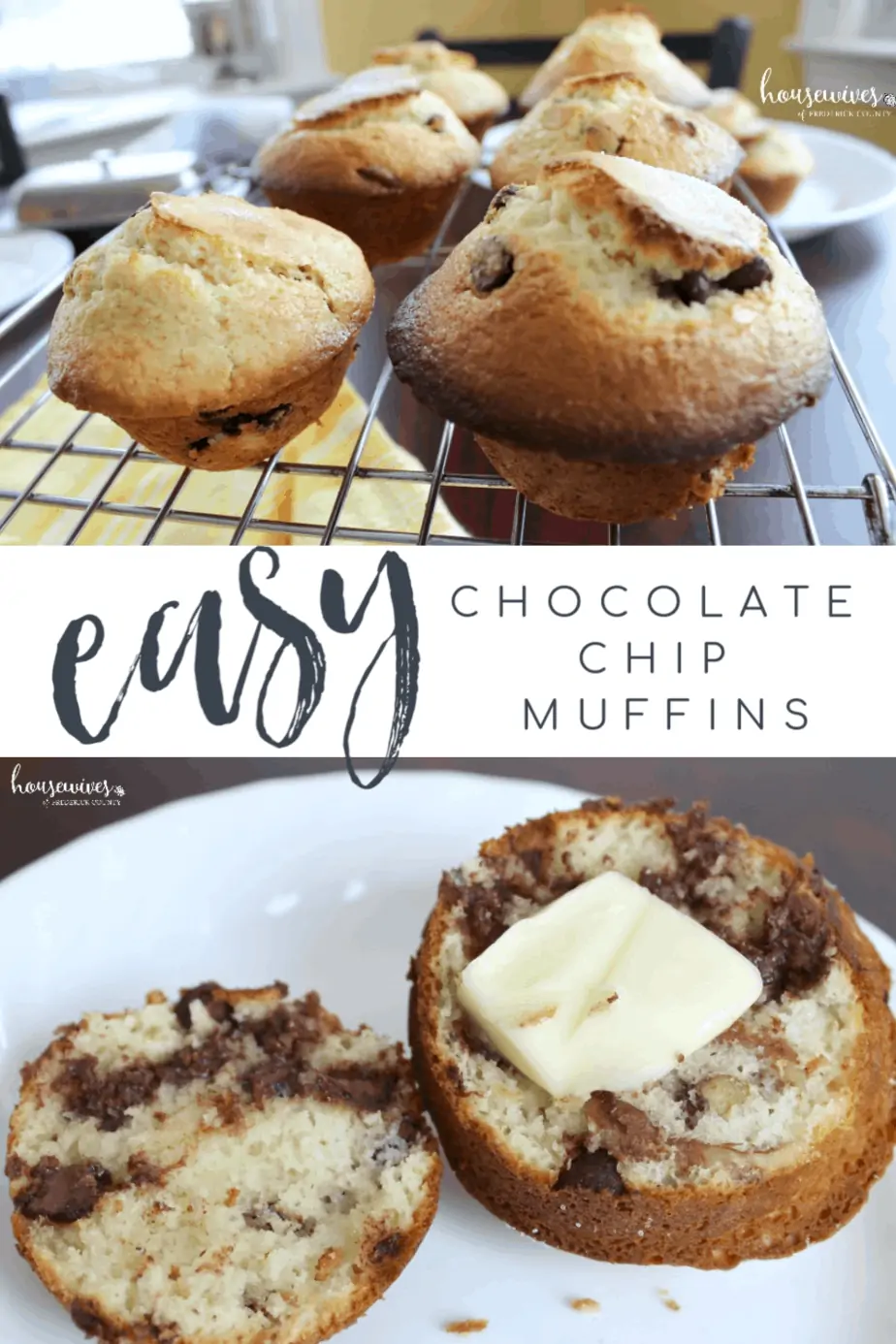 These chocolate chip muffins will totally satisfy your hankerin’ for a chocolaty, crusty, fresh, buttery breakfast!