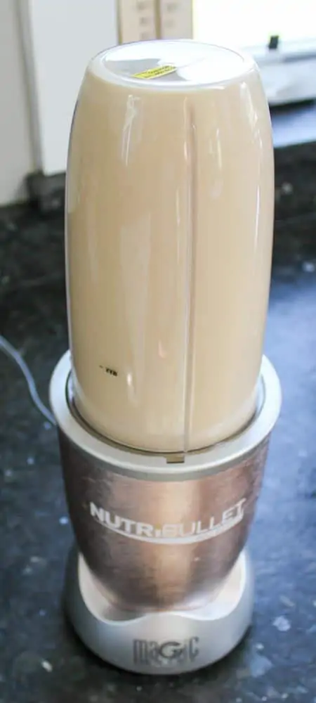 Add all of your ingredients to a blender or NutriBullet and blend it until it’s nice and frothy.