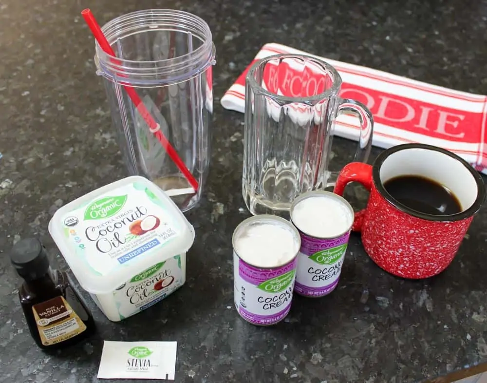 With this iced bulletproof coffee recipe, you won’t use butter because, yeah, butter solidifies when it’s cold.