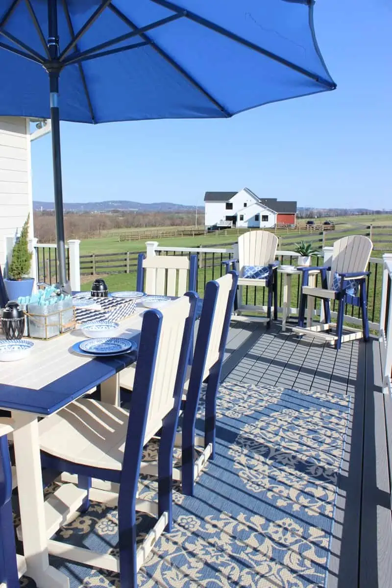 In our case, we chose counter height tables and chairs so we could sit high enough to see the beautiful view of the mountains over the railings of our deck.